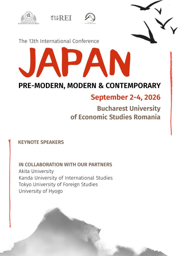 The Center for Japanese Studies at the Bucharest University of Economic Studies (Romania), with the support of its collaborators from Akita University, Kanda University of International Studies, Tokyo University of Foreign Studies and University of Hyogo, is pleased to announce organizing the 12th international conference Japan: Pre-modern, Modern and Contemporary, on September 2-4, 2026, in Bucharest (Romania).